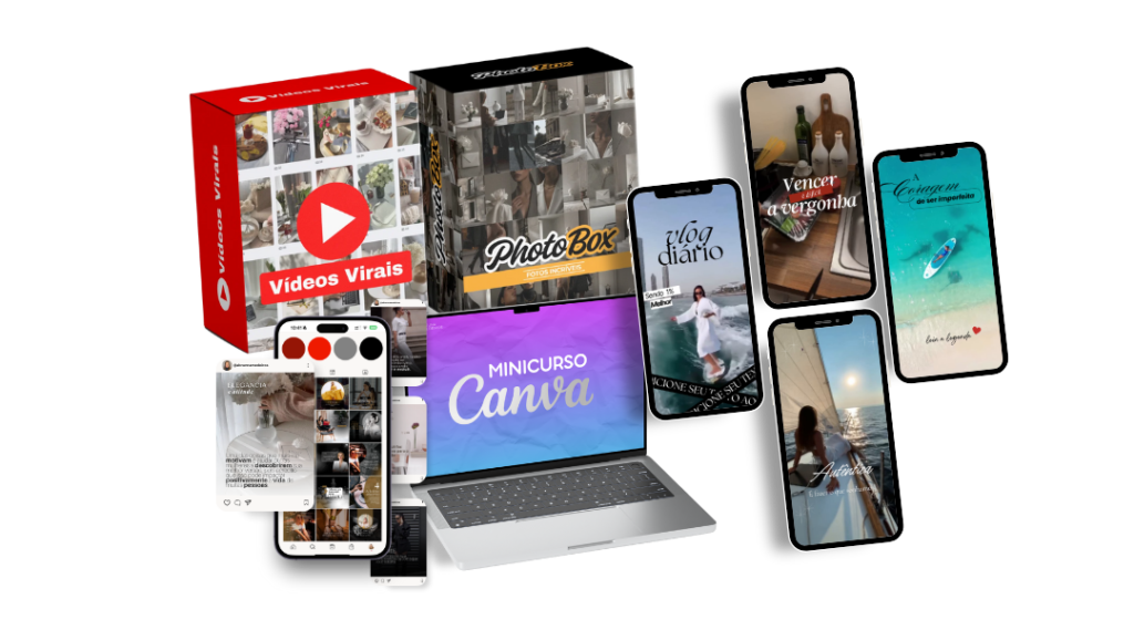 ✅ Usa o Canva Box Viral → +450 artes para feed, reels, capas para destaque + Modelos de Carrosséis + 150.000 fotos profissionais + Minicurso Canva