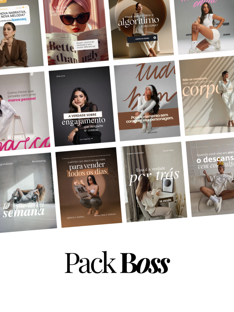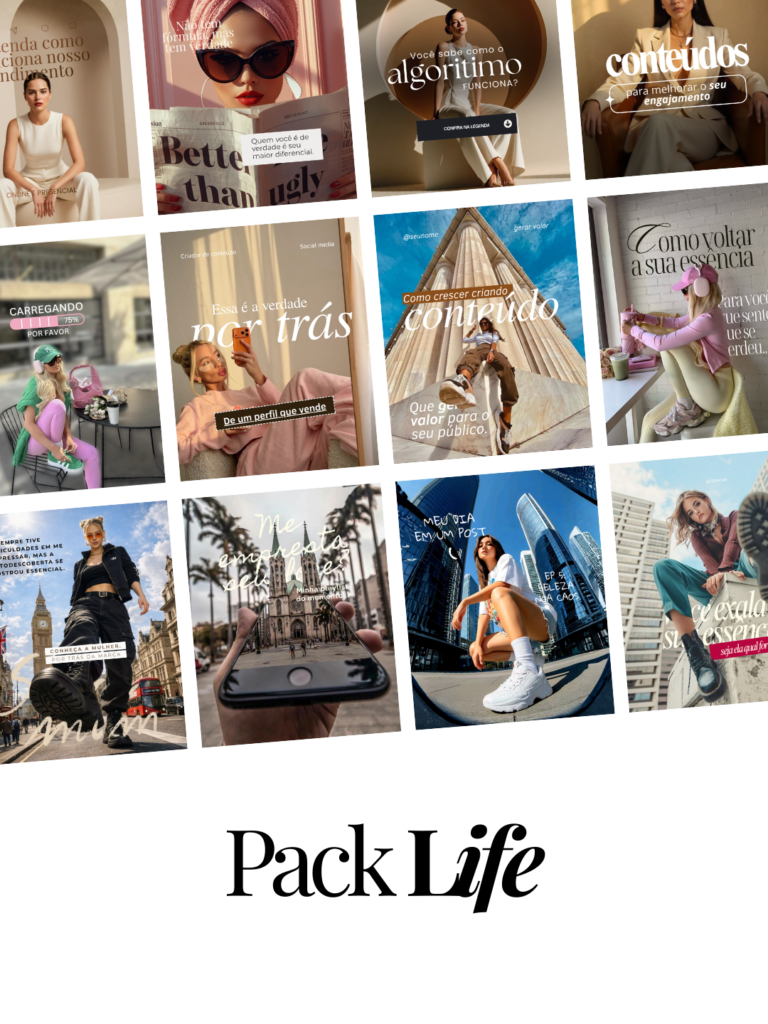 +450 Artes para feed, stories, reels, capas para destaques − prontos para gerar alcance, mesmo sem precisar aparecer.